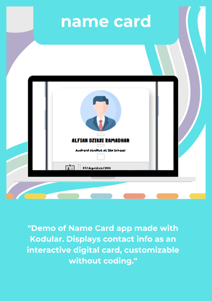 This video showcases a demo of the Name Card application created using Kodular. The app is designed to display contact information in the form of a digital card with a simple yet interactive interface. The demo shows how the main features work, allowing users to easily present their personal data. In addition, the Name Card design can be customized to suit individual needs, making it more visually appealing. This project serves as an example of building an Android application without the need to write code manually.